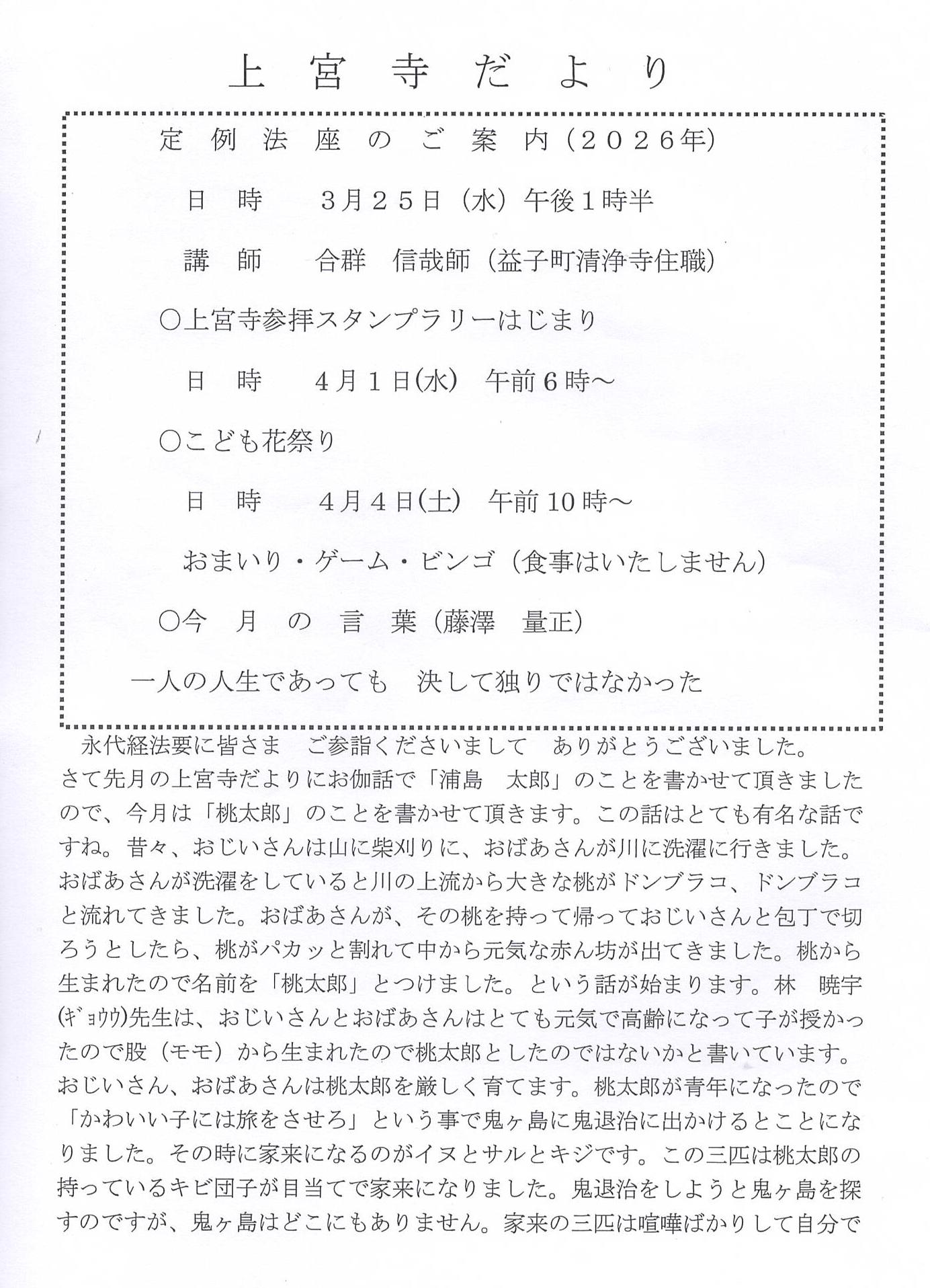 令和8年3月の上宮寺だより