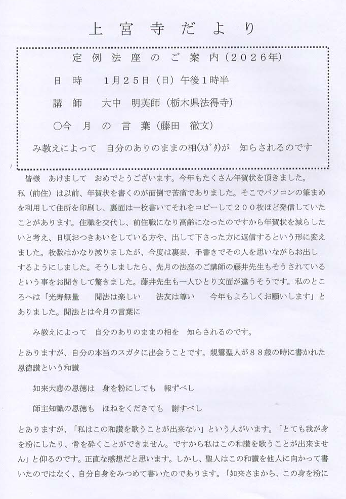 令和8年1月の上宮寺だより