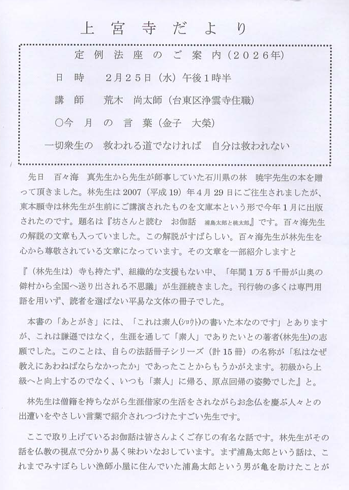 令和8年2月の上宮寺だより