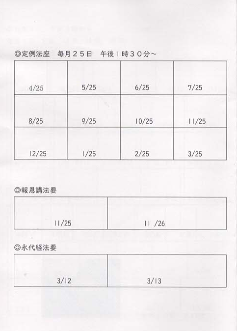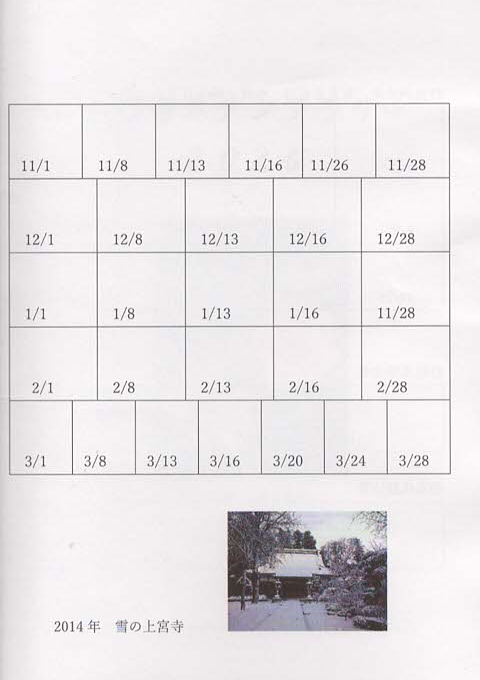 なお、予定日につきましては、年間行事予定表のページまたは、以下に示すスタンプラリー台紙をご参照願います。ご参加いただいた参拝日ごとにスタンプを押して、より多くの方に上宮寺にご参拝していただき、阿弥陀さまとご縁を結んでいただければと思っております。 合 掌