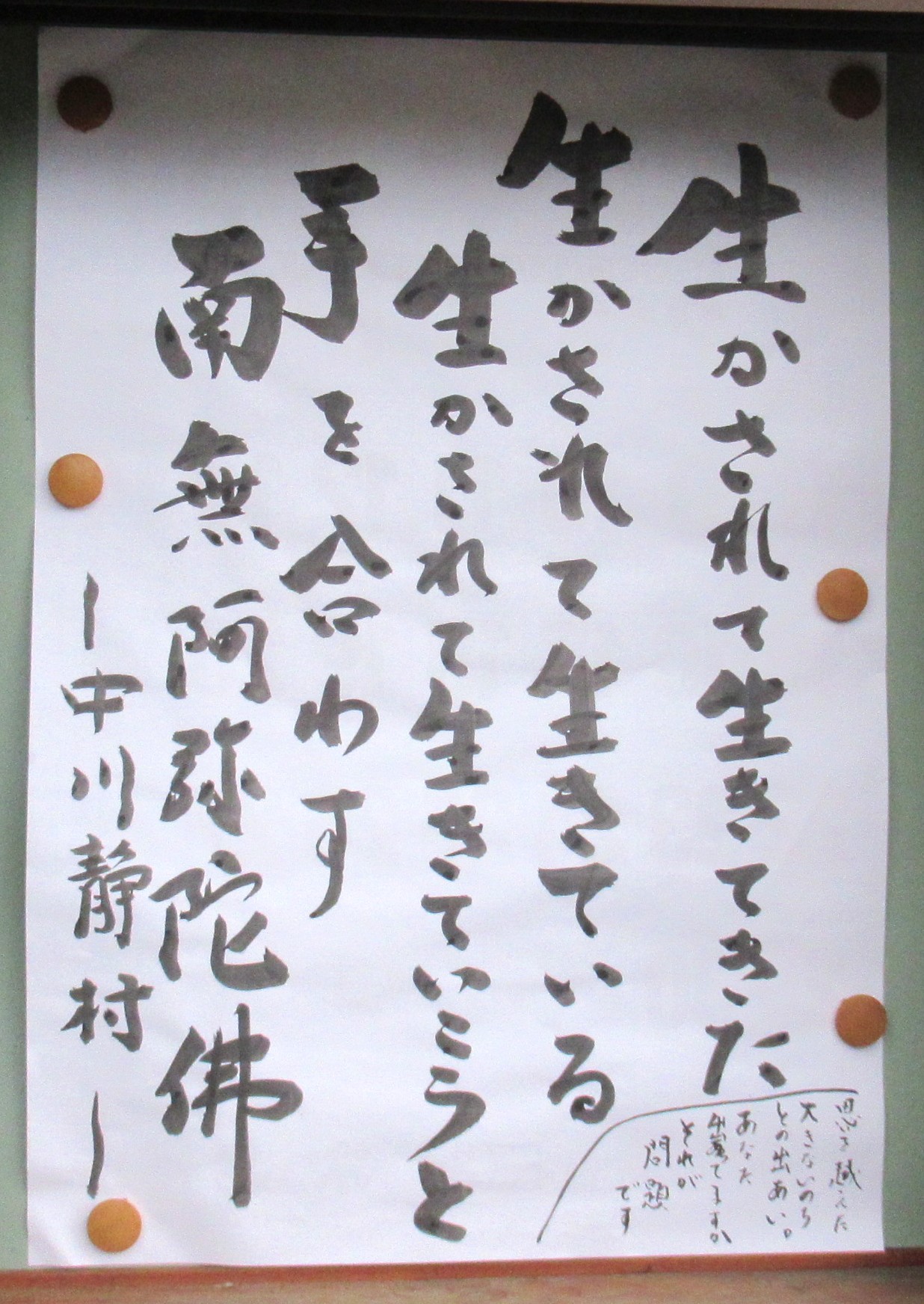 上宮寺山門前掲示板の令和7年8月の言葉です。