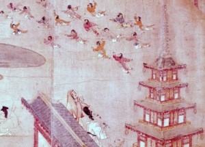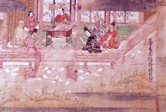 この絵伝は、巻首の詞書1段と絵14段からなり、絵は聖徳太子の一代記を表しているが、詞書に「肝要をぬき画図にあらわして」とみえることから、入胎・誕生から上宮王家滅亡に至る18の重要な事跡を選んで一巻としています。